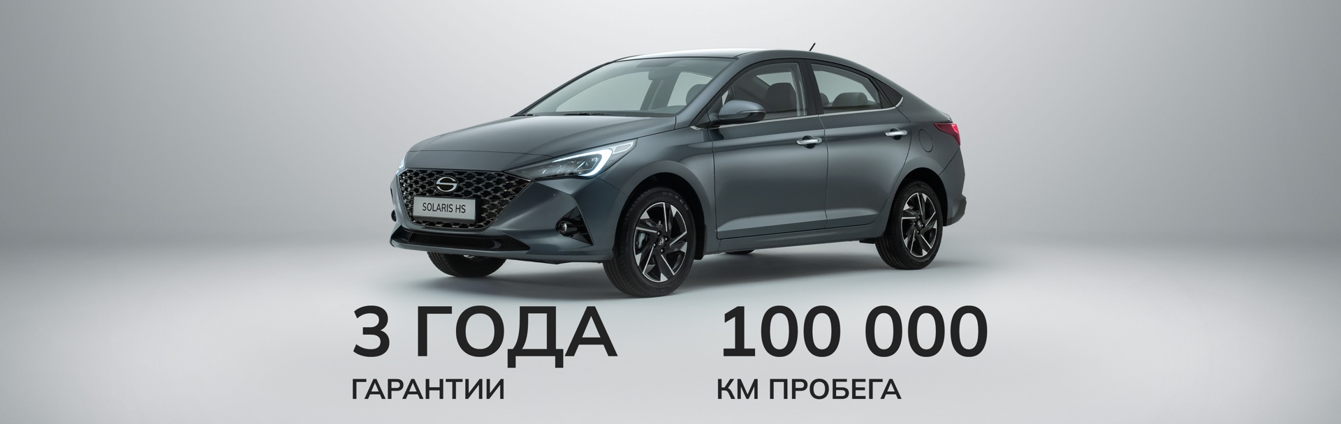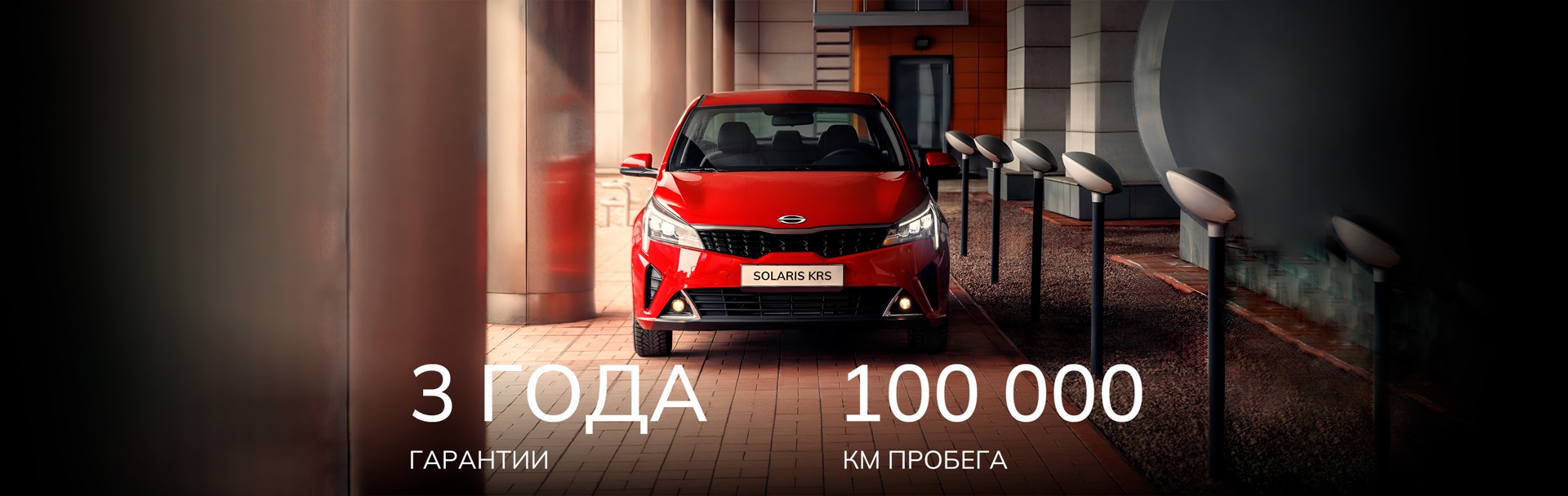 Срок гарантии на новые автомобили марки Solaris, за исключением отдельных комплектующих изделий, составляет 3 года или 100 тыс. км пробега (в зависимости от того, что наступит раньше), начиная с момента продажи (передачи) автомобиля уполномоченным производителем дилером / партнером первому покупателю.